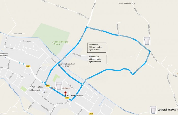 De start en finish zijn gelegen aan de dorpsstraat in Chaam. De finish ligt ter hoogte van de Locobar. Hier kunt u zich tevens inschrijven. U kunt zich omkleden en na afloop douchen bij het complex van de V.V. Chaam (Groot Heivelt) aan de Gilzeweg 45 of bij de gymzaal gelegen aan de Kinderbeemd.