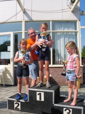 Het podium bij de meisjes met vlnr Joyce van Loenhout, Claudia Verheijen en Tatum Geerts.
