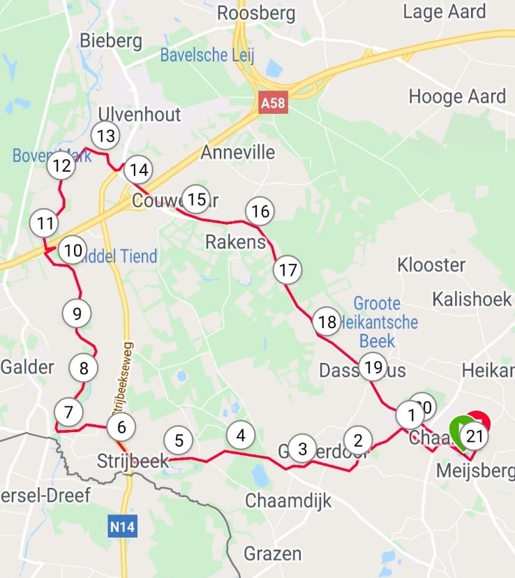 Route van Sander van den Broek over 21.10 km tijdens de Halve Marathon.