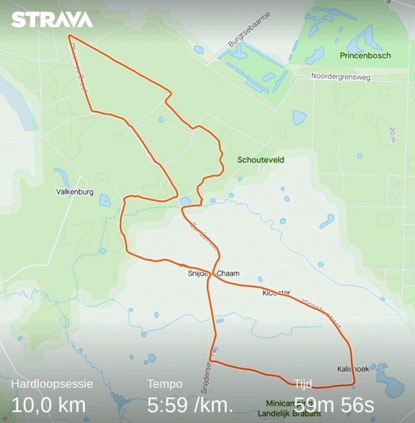 Route van Drik den Dekker over 10.00 km tijdens de 10 kilometer.