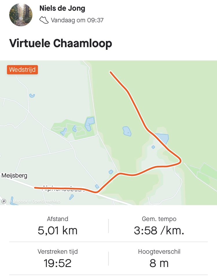 Route van Niels de Jong over 5.01 km tijdens de 5 kilometer.