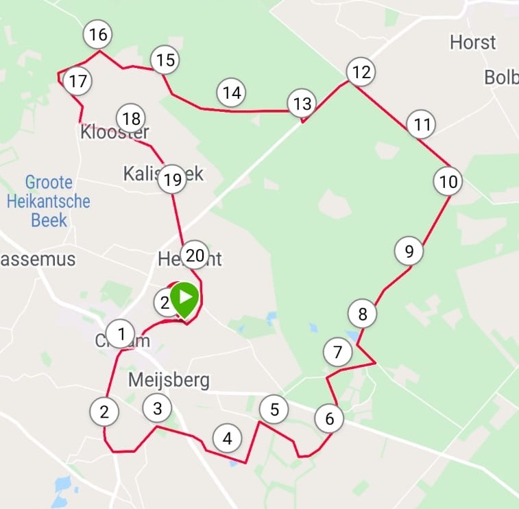 Route van Angelique Jansens over 21.10 km tijdens de halve marathon.