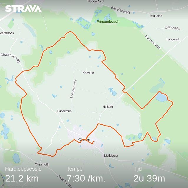 Route van Hermans over 21.2 km tijdens de Halve Marathon.