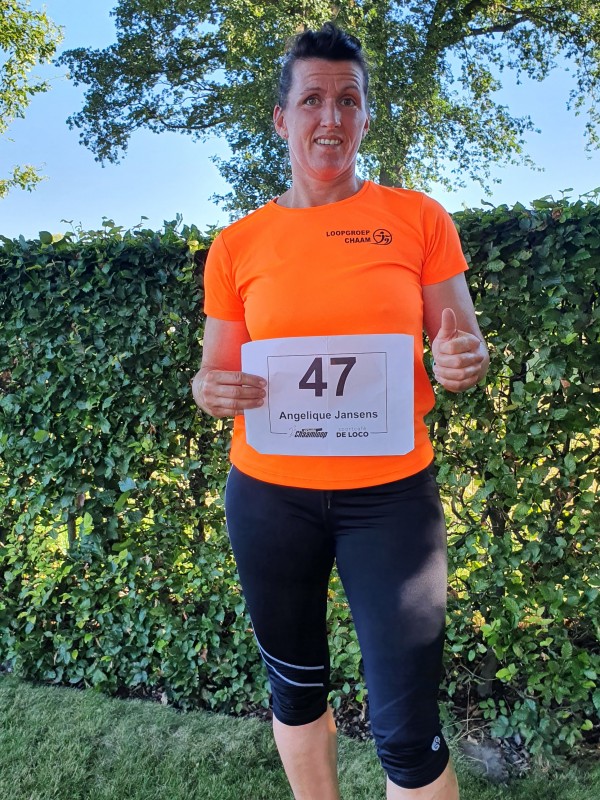 Selfie van Angelique Jansens tijdens de halve marathon.