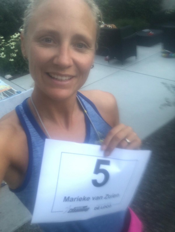 Selfie van Marieke van Zuien tijdens de Halve Marathon.